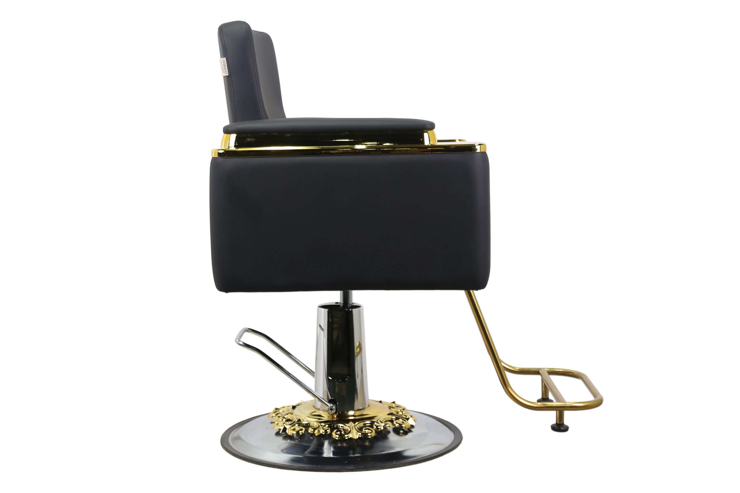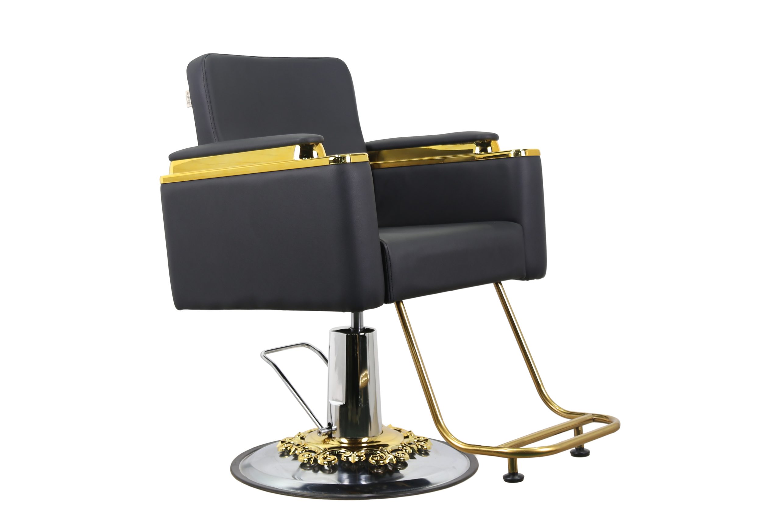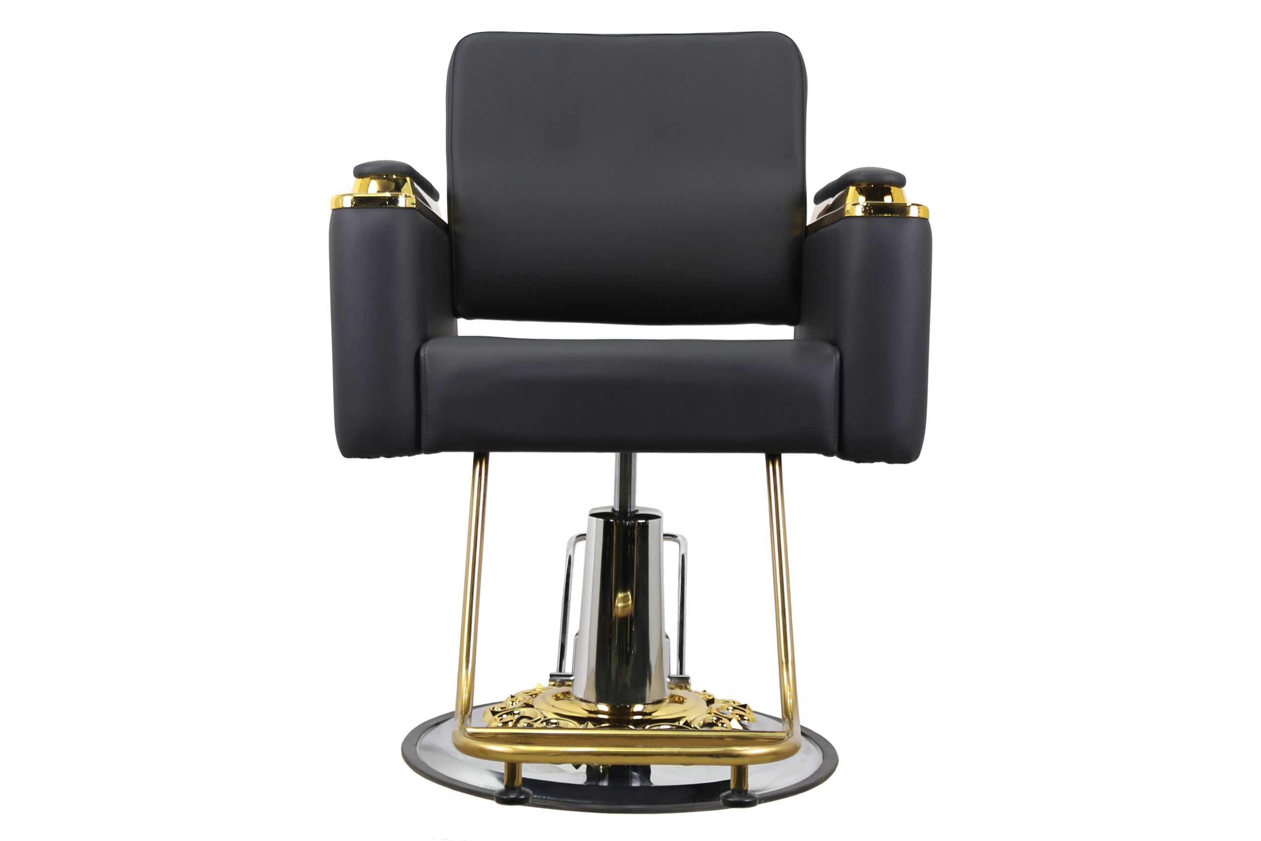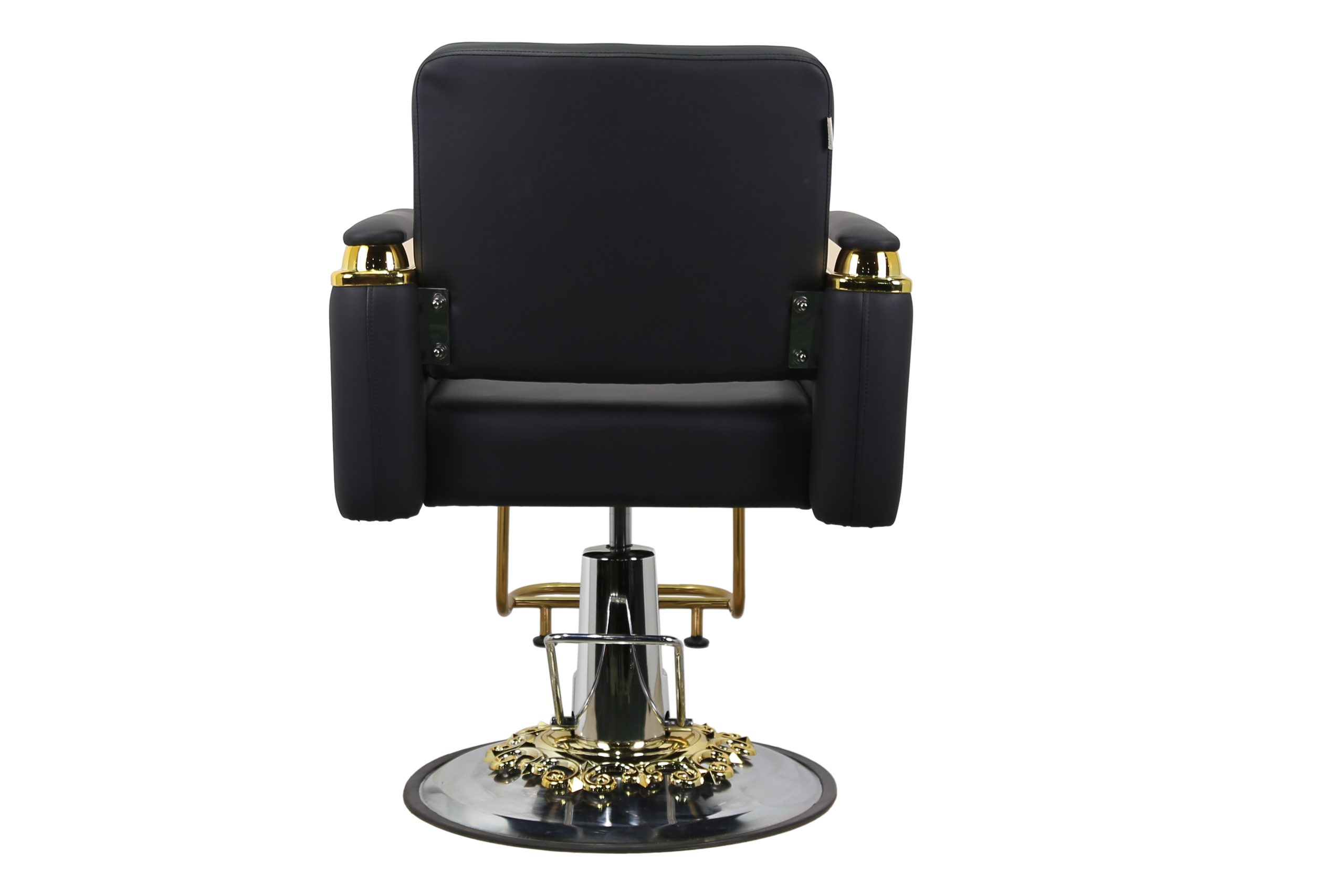 Modern Hydraulic Barber Chair – Black Leather with Gold Detailing