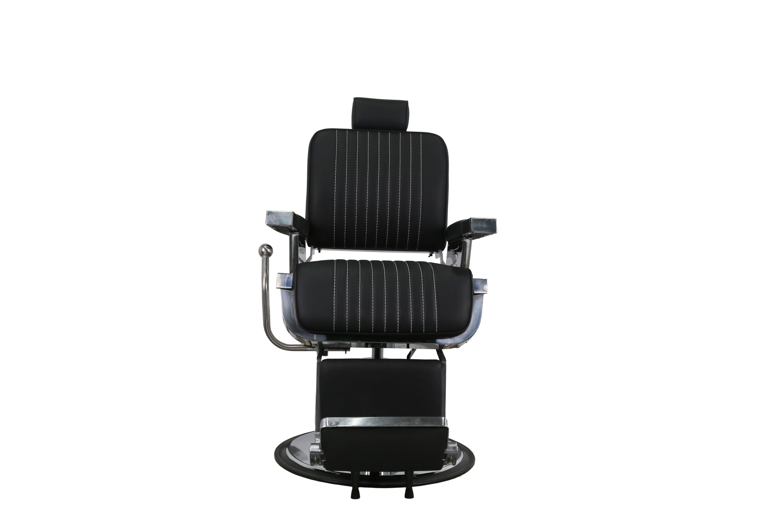 Retro Striped Hydraulic Barber Chair with Reclining Back and Adjustable Headrest