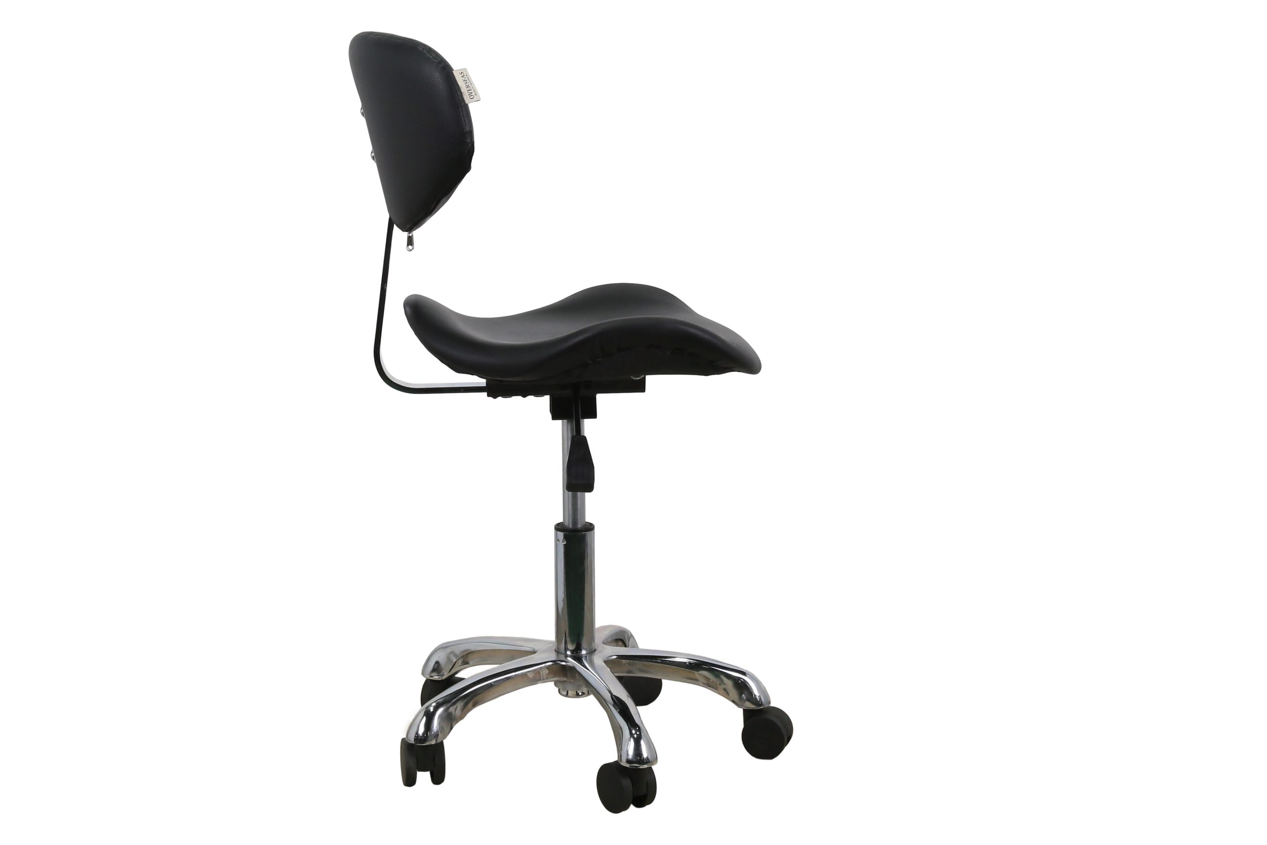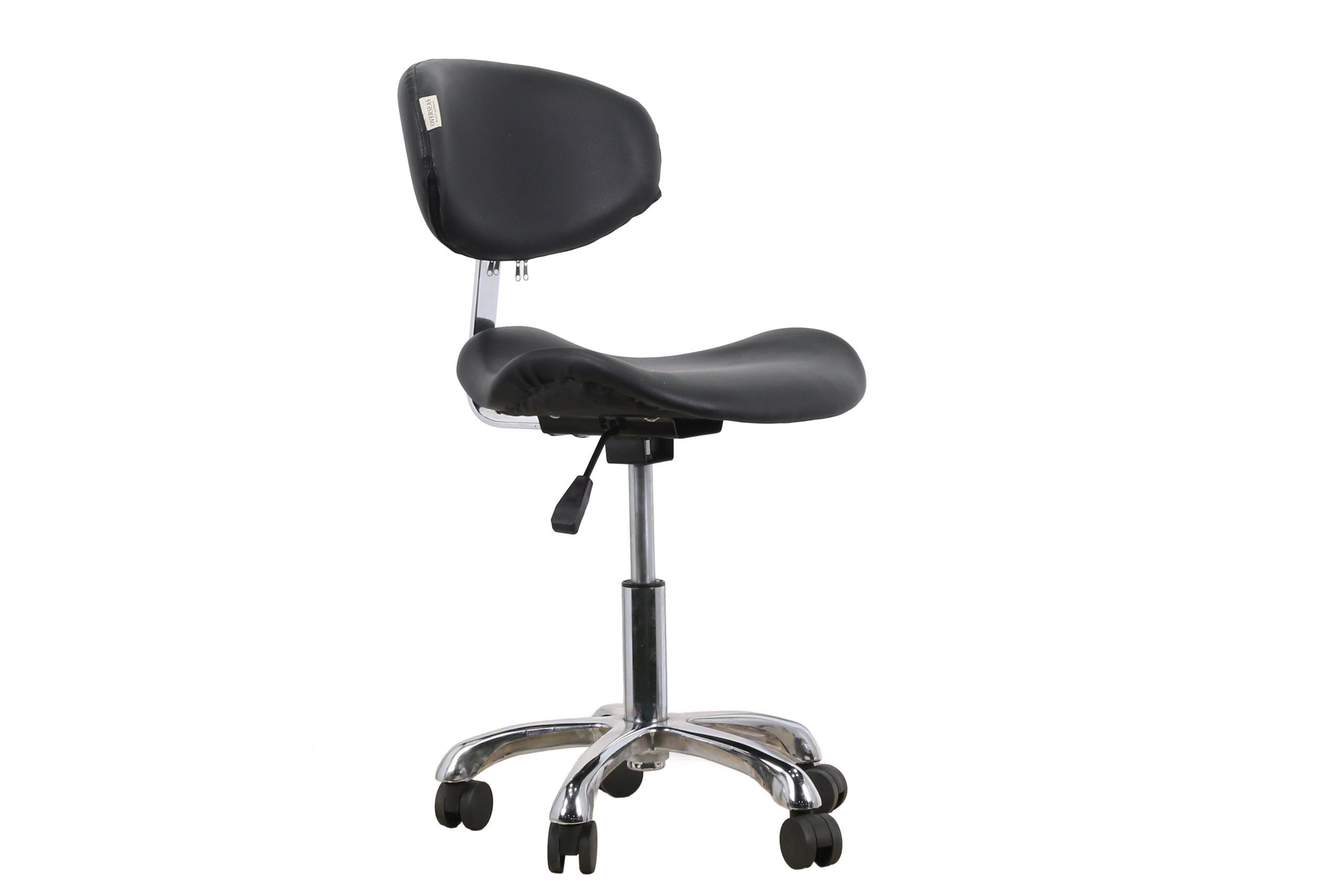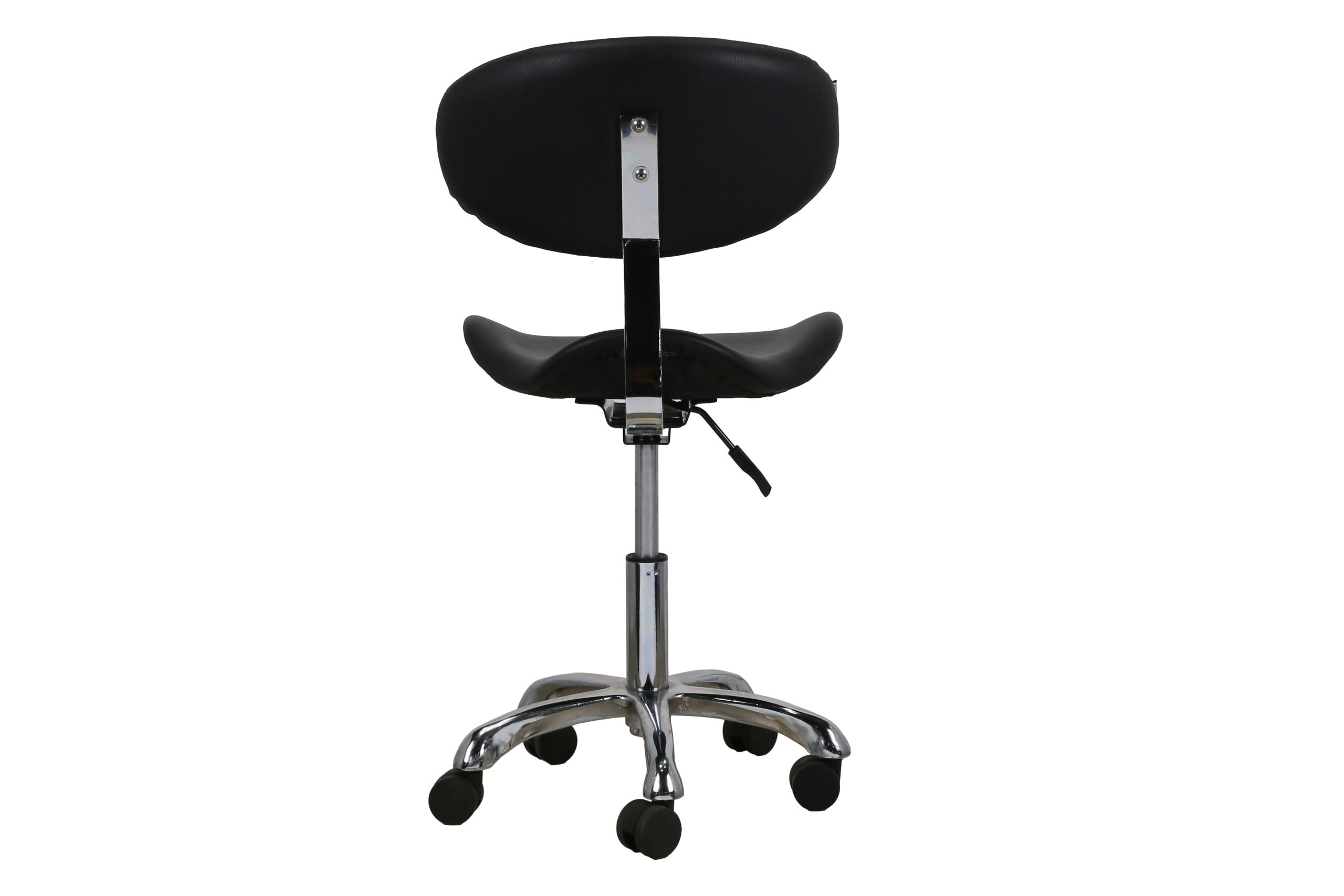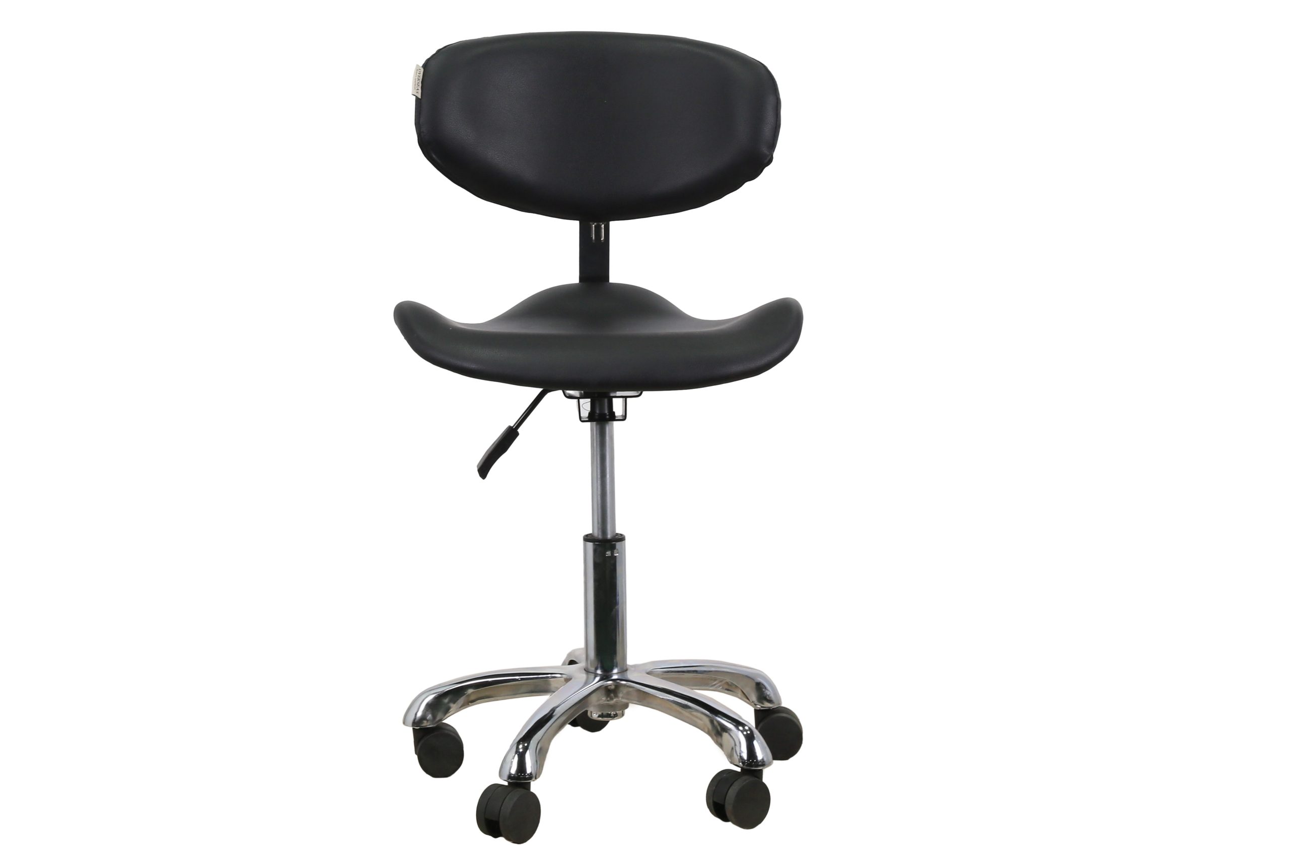 Salon Stylist Stool with Backrest – Black Seat & Rolling Wheels