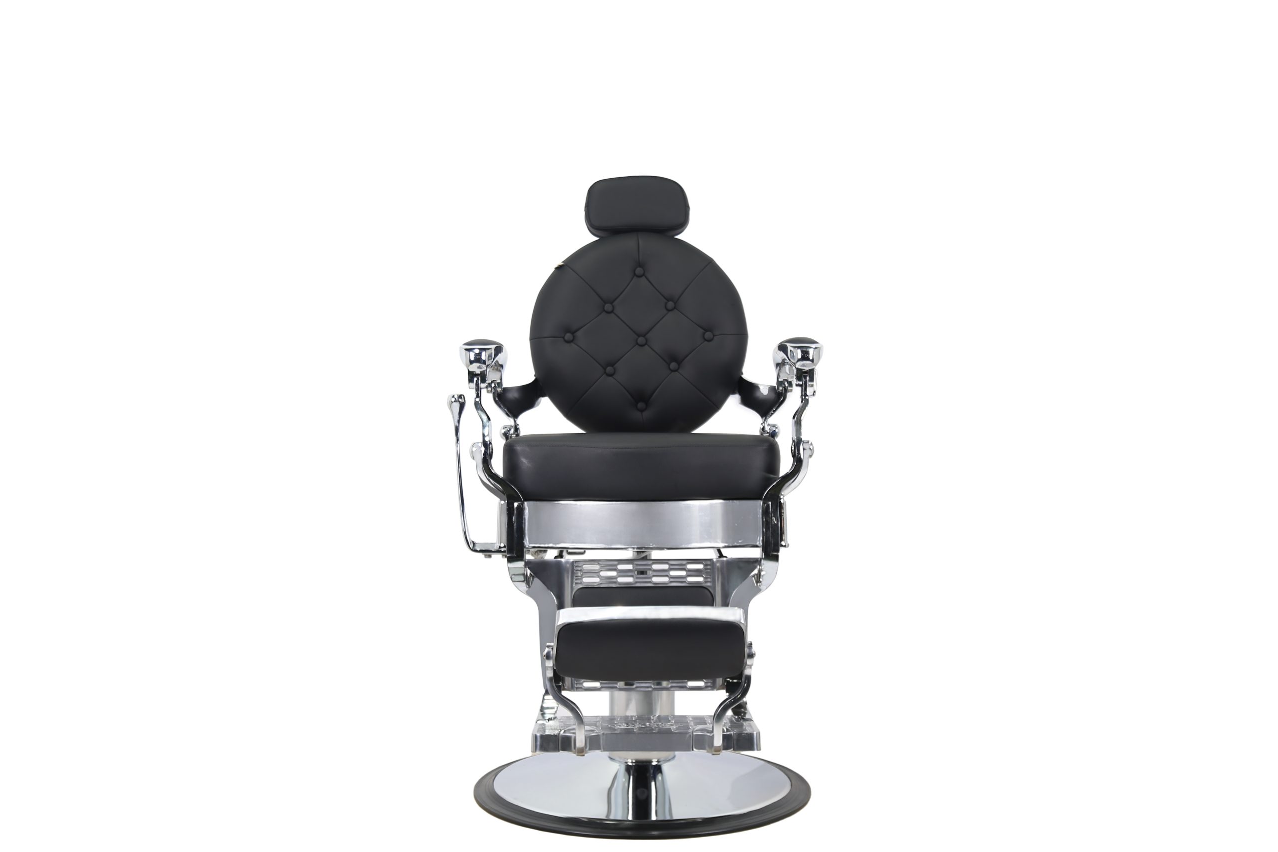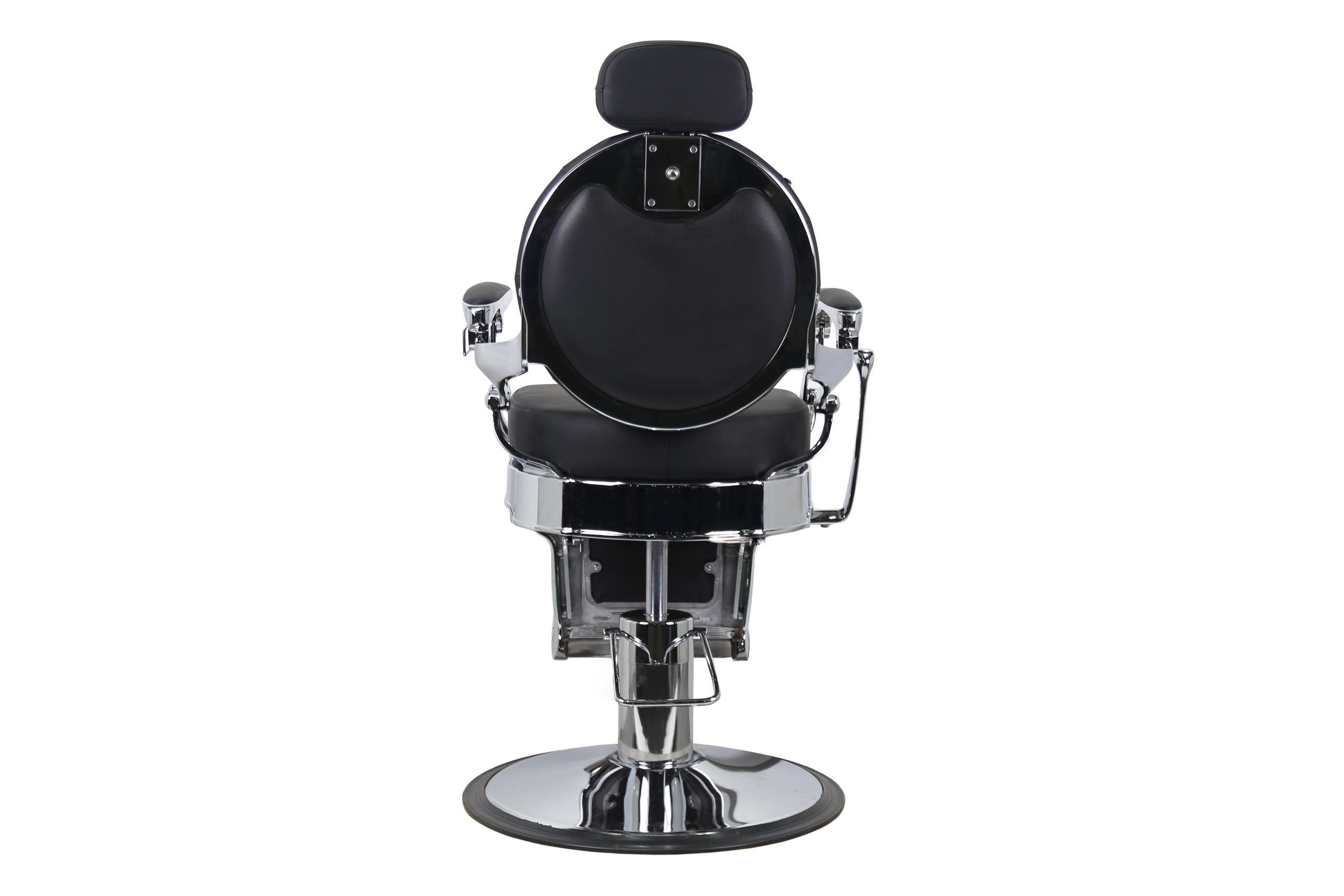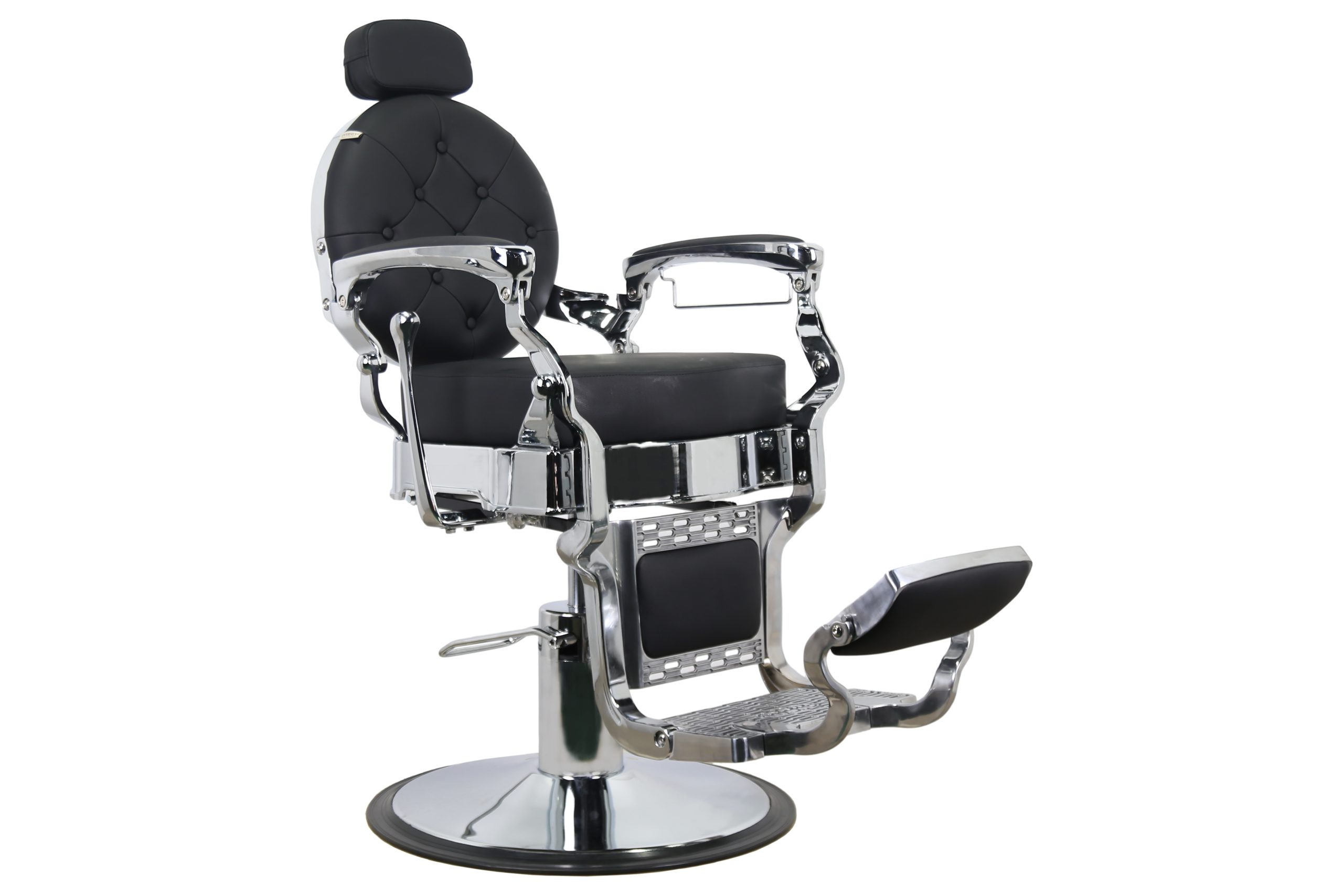 Vintage Hydraulic Barber Chair – Black Leather with Chrome Frame & Adjustable Headrest