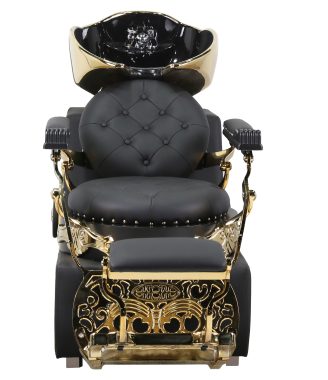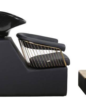 Luxury Barber Backwash Unit Black Leather Shampoo Chair with Chrome Armrest Reclining Wash Station for Salon Spa